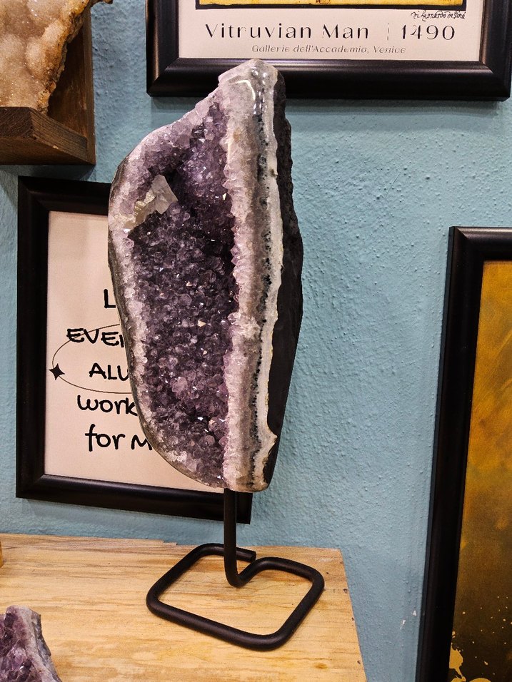 Ürün 3,130 kilogramdır. 10 cm genişlik 32 cm yükseklik Brezilya ürünüdür demir ayakları sayesinde dekorasyonda rahatça kullanılabilir. Ametist, bir kristal taşıdır ve genellikle mor renkte bulunur. Ametist, kristal yapısı nedeniyle özellikle enerji düzenleme, meditasyon ve kişisel gelişim için kullanılır. Aynı zamanda, ametist taşı , stresi azaltmaya, dikkat ve konsantrasyonu arttırmaya ve duygusal dengeyi sağlamaya yardımcı olur.