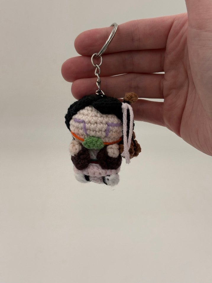 Renkli örgü ile yapılmış, pastel tonlarda, bohem ve retro tarzda rahat bir anahtarlık.