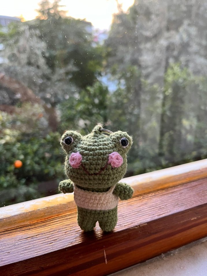Amigurimi Renkli Yeşil Örgü Kurbağa anahtarlik
