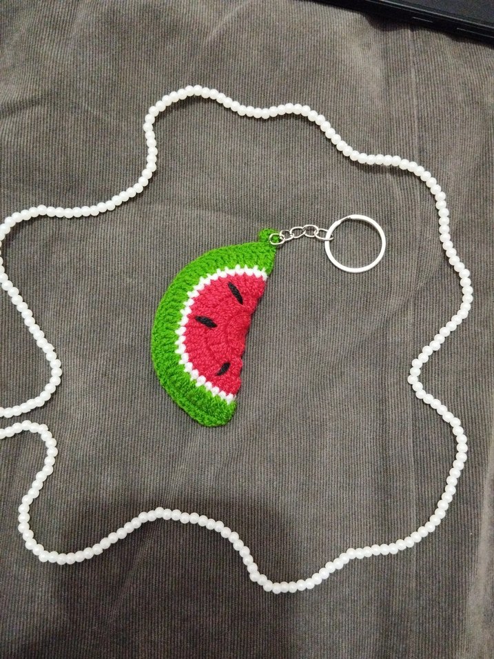 karpuz dilimi şeklinde, minimalist ve bohem tarzda anahtarlık. Anahtarlarınıza retro hippie havası katar.