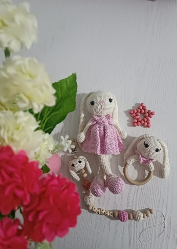 Pembiş uzun kulak tavşan set. İstediğiniz renk de sipariş üzerine yapıyorum satın almadan önce mesaj atınız.
