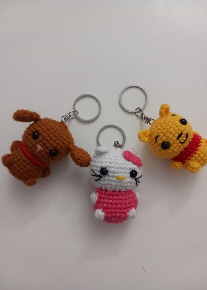 Amigurumi hello kitty,şirin köpekcik ve winnie the pooh anahtarlıklar. Kendi el emeğimdir. Adet fiyatıdır.