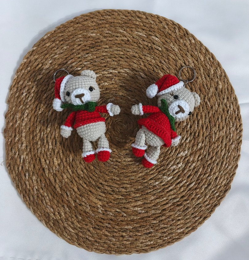 Renkli, örgü ayıcık anahtarlıklar; kahverengi ve kırmızı detaylarla bohem tarzına uygun, sıcak ve rahat bir görünüm sunar . Sipariş üzerine örüyorum