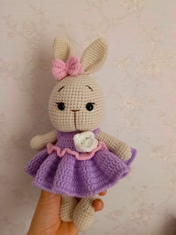 lila renkli fiyonklu elbise li tavşan oyuncak