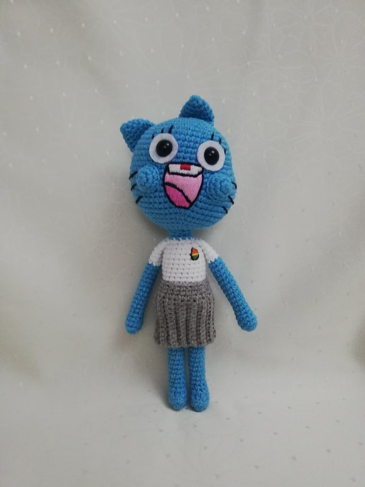 Gumball çizgi filminin baş karakterlerinden biri olan Nichole, amigurumi ipiyle özenle örülmüştür. Emniyetli göz kullanılmıştır. Boyu 22cm dir. #amigurumi #oyuncak #amigurumioyuncak #çizgifilm #disney #carton #gumball #nicole #kedi #mavikedi #hediyelik #dişkaşıyıcı #koleksiyon #alize #alizecottongold