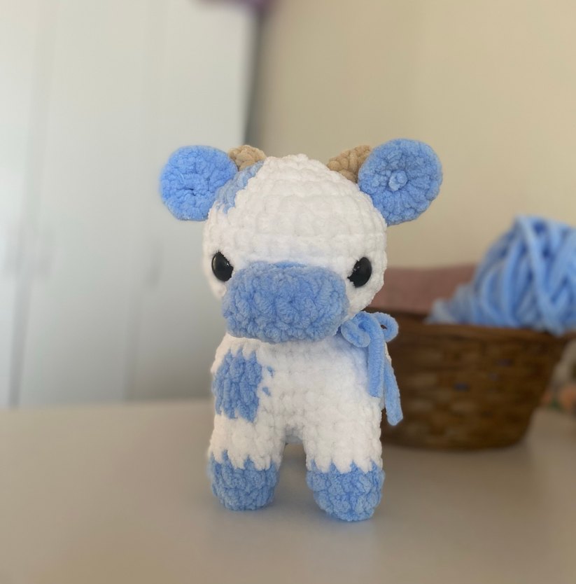 Amigurumi İnek Pastel Mavi Peluş Oyuncak