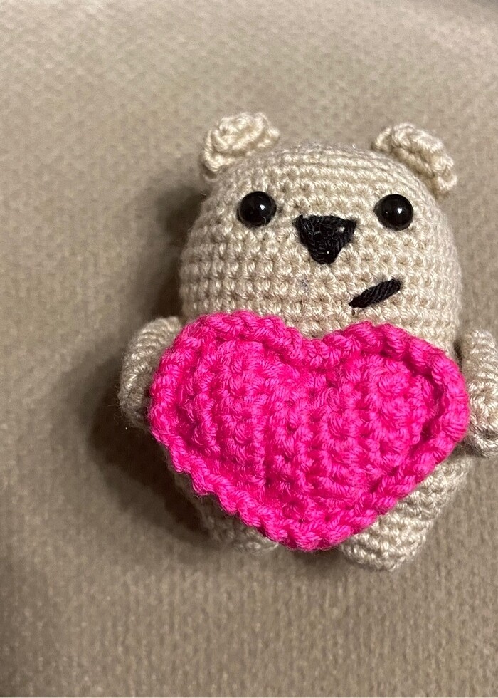 Amigurumi kalp yastıklı ayıcık anahtarlık