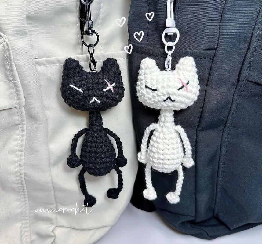 Amigurumi Kedi Anahtarlık siyah beyaz kedi