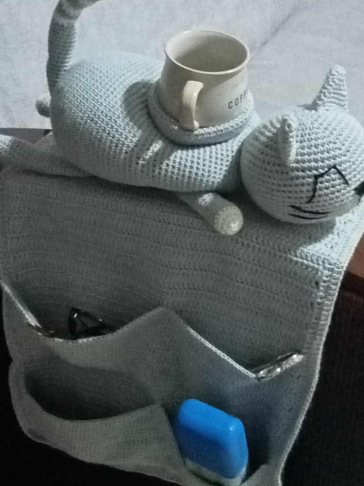 amigurumi kedi şeklinde, çoklu cepleri olan eşyalar için organizer. El emeği. sipariş üzerine yapıyorum