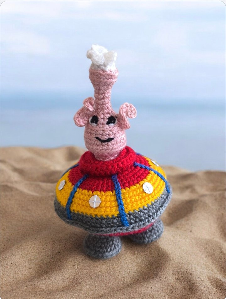 amigurumi örgü uzaylı ve uzay gemisi oyuncak