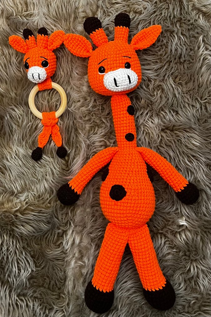Amigurumi örgü Zürafa Diş Kaşıyıcı ve Oyuncak bebek hediyesi