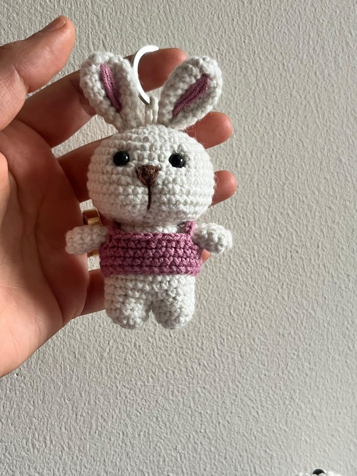 Amigurumi Pembe Kıyafetli El Örgüsü Tavşan Anahtarlık