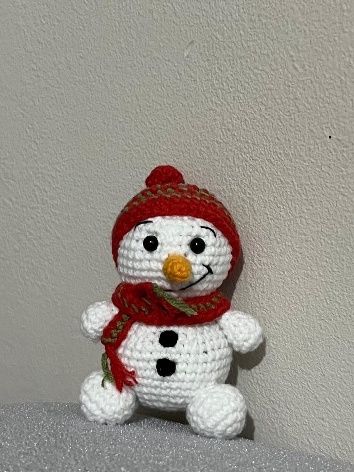 Renkli kırmızı-yeşil atkı ve şapka takan beyaz kar adam. ❄️