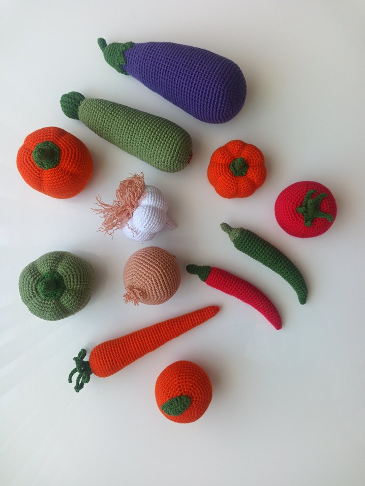 El yapımı renkli amigurumi sebzelerden oluşan set, patlıcan, havuç, domates gibi farklı şekiller içerir. Dilediğiniz sebze, meyveleri seçerek siparis oluşturabilirsiniz. Fiyat seçtiğiniz ürün ve sayısına göre değişiklik gösterir. Belirtilen fiyat ortalama bir ürün fiyatıdır.