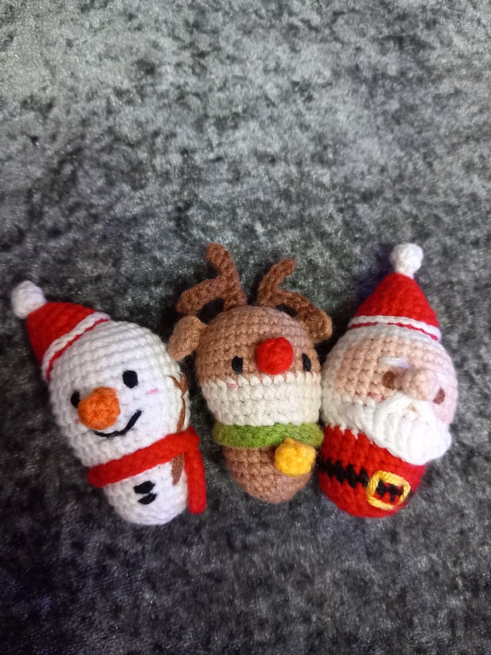 Renkli örme yılbaşı anahtarlıklar kendi el emeğim; kardan adam, geyik ve Noel Baba figürlerinden oluşur. Anahtarlık aparatı takılıp gönderilir. Adet fiyatıdır.