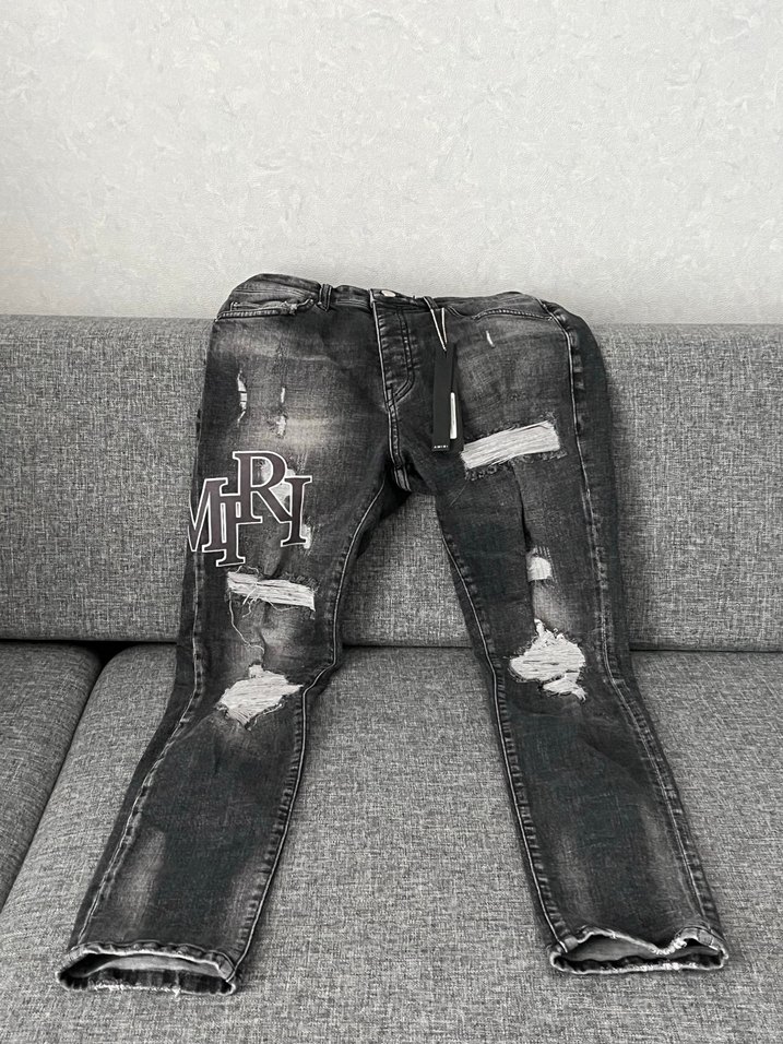 Gri renkte, bol kesim ve kemer tokalı detaylara sahip denim pantolon. Yıpranmış görünümlü, günlük sokak stiline uygun, normal boyda ve desensizdir.
