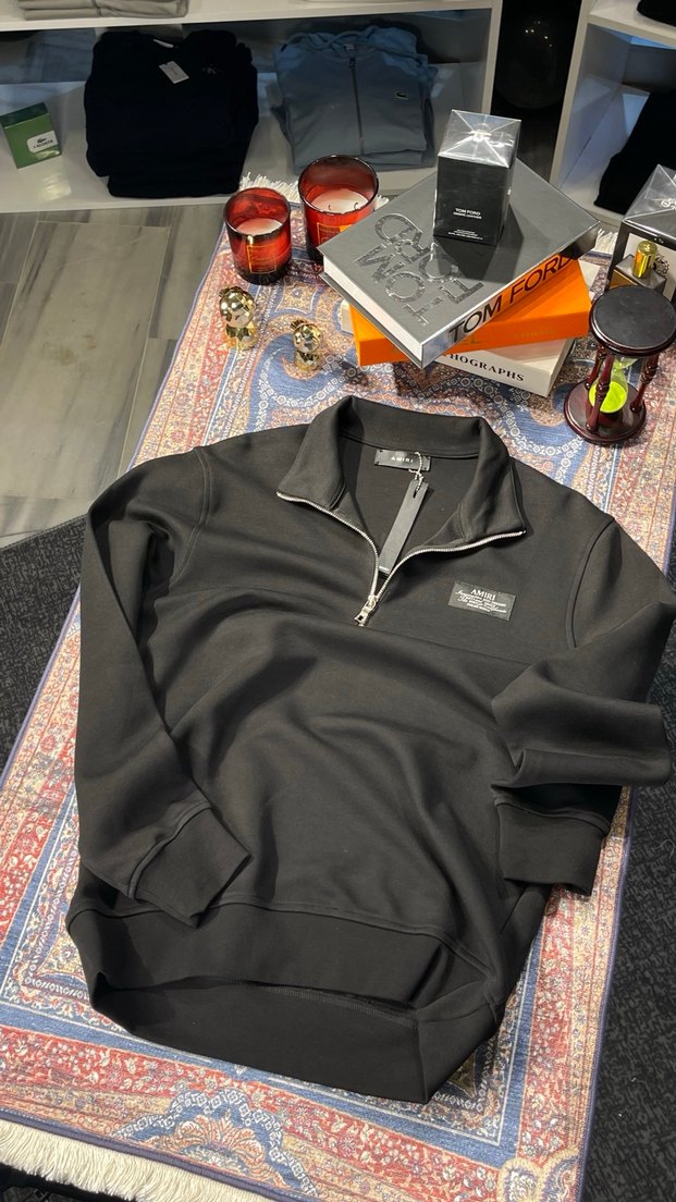 Amiri Siyah Yarım Fermuarlı Erkek Sweatshirt