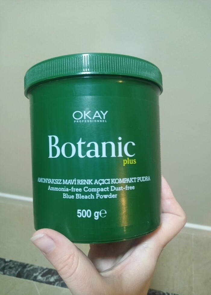 OKAY PROFESSIONNEL Botanic Plus Amonyaksız uçuşmayan daha temiz içerikli doğal toz açıcı oryal 26.10.24te kapağı açılmış ve 500 gramdan 45 gr kullanılmıştır.Faturasını yükledim. Chi ionic 11W 30gram saç boyasını hediye göndereceğim.