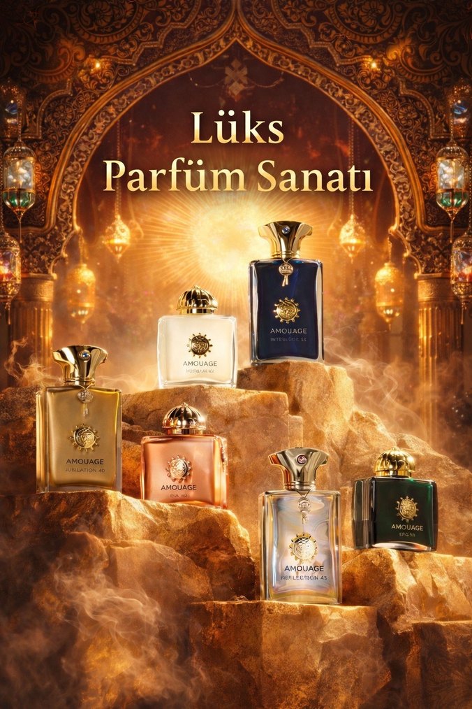 Amouage, şık şişelerde zengin kokular sunan lüks kadın parfüm koleksiyonudur. Her koku parfüm sanatını yansıtır.
