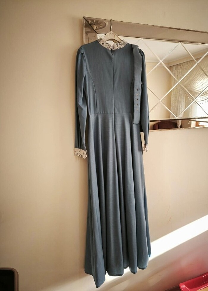 AN-NAHAR 38 BEDEN YUMUSAK KOT görünumlu elbise dantel detaylı