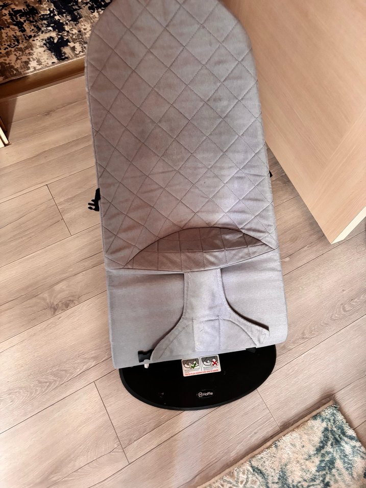 Gri renkli, kapitone kumaşlı ve ayarlanabilir kayışlı bebek taşıma askısı. Yumuşak ve nefes alabilen malzeme, bebeğin rahatlığı için tasarlanmıştır.