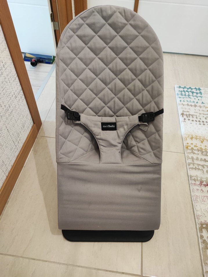 Yumuşak kumaş oturma yüzeyi ve sağlam siyah metal çerçeveli gri anakucağı