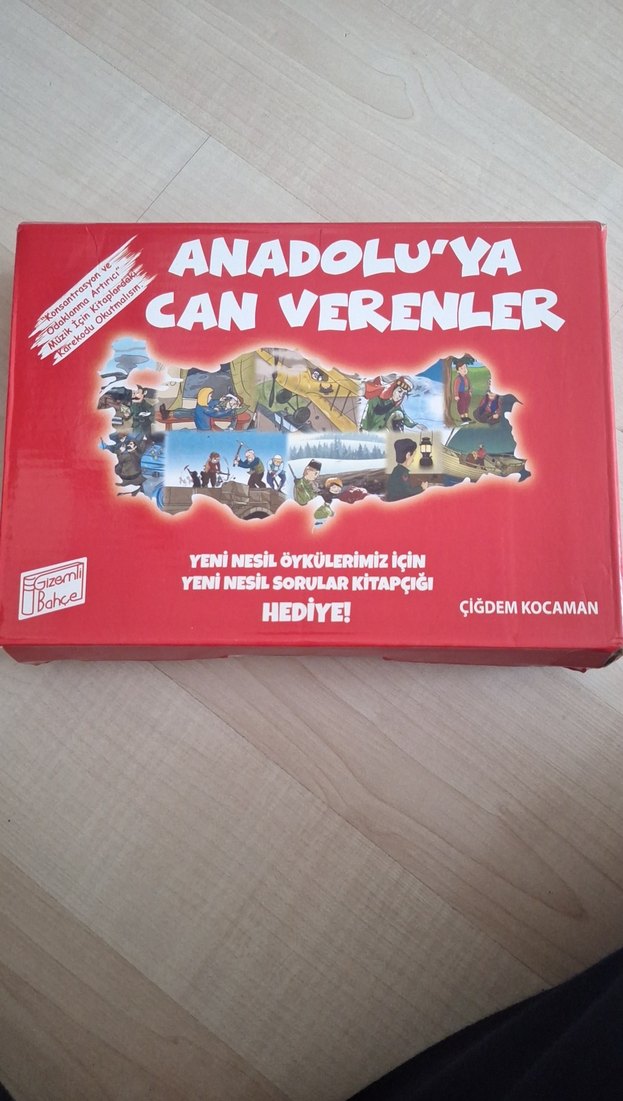 Kırmızı kutuda Anadolu'ya Can Verenler adlı kitap seti içleri tertemiz sadece resimde de gözüküyor çocuk yazı yazmış.Değerlendirme testi yok
