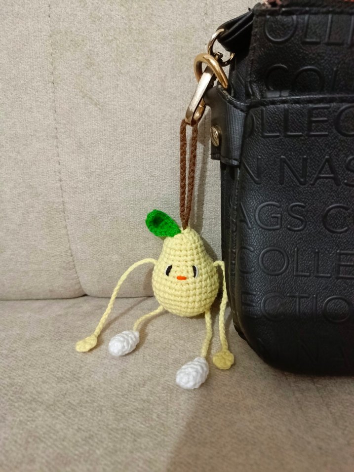 Renkli sari armut figürlu kolları hareket edebilen eğlenceli anahtarlık, çanta süsü