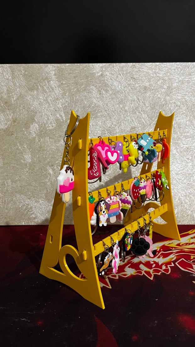Çift taraflı anahtarlık veya küpe sergileme aparatı