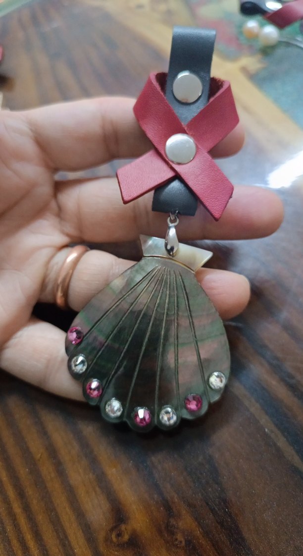 Koyu pembe fiyonk detaylı, baskılı desenli Gerçek Deniz ürünleri Kabuk şeklinde, taş süslemeli Türkiye de tek yapılan üründür..Genelde Belediye başkanı vb kişilere hediye verilir..