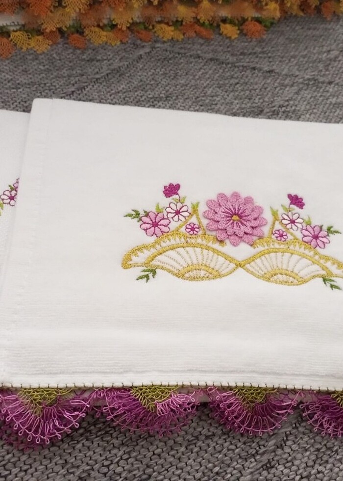 İğne oyası 2 li havlu seti bir büyük bir küçük havlu