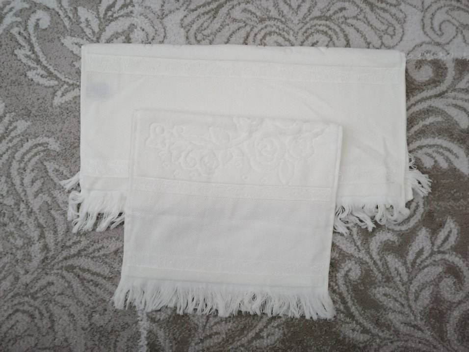 GONCA marka kadife 50*90 ve 30*50 ebatlarında etamin/kanaviçe havlu seti.