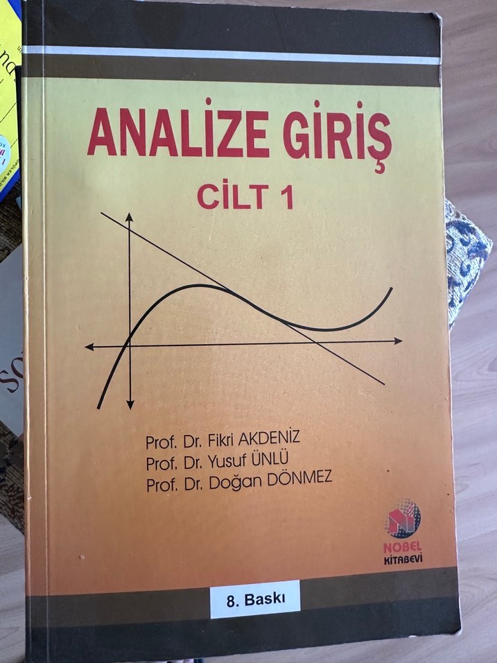 Analize Giriş Cilt 1, Prof. Dr. Fikri Akdeniz, Prof. Dr. Yusuf Ünlü ve Prof. Dr. Doğan Dönmez tarafından yazılmış, Nobel Kitabevi tarafından yayımlanmış sınav hazırlık kitabıdır.