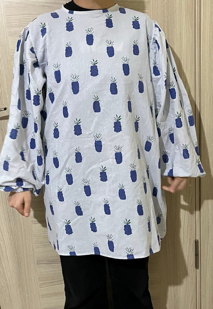 Pamuk kumaştan, ananas desenli, uzun kollu ve düğmeli rahat kesim hamile tunik. Beyaz ve gri tonlarında, bohem ve rahat stil sunar. Günlük kullanıma uygun.