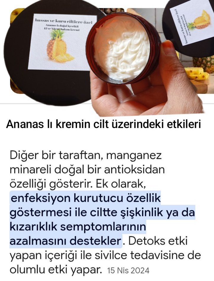 Ananaslı Vücut ve yüz KremiEnfeksiyon Kurutucu ve Detoks Etkili