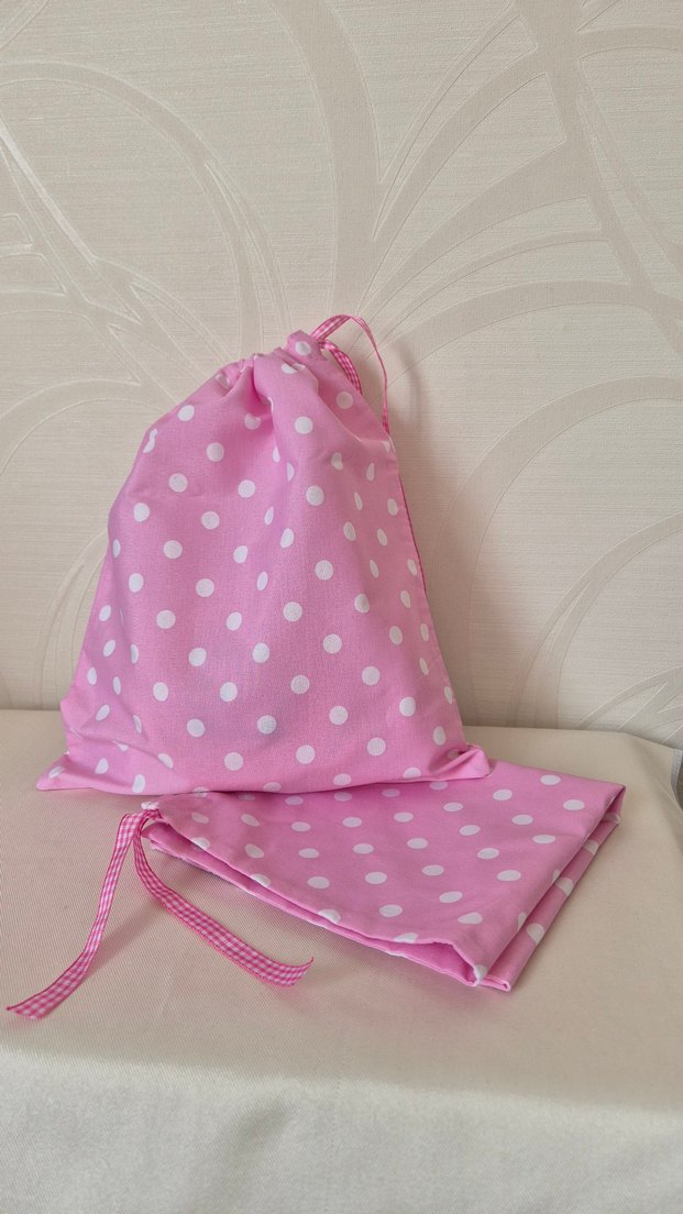 Poplin kumaştan dikilmiştir. Anaokulunda , bebek çantasında kirli torbası,bez çantası olarak kullanılabilir. Büyük torba:40×34cm Küçük torba:32×28cm