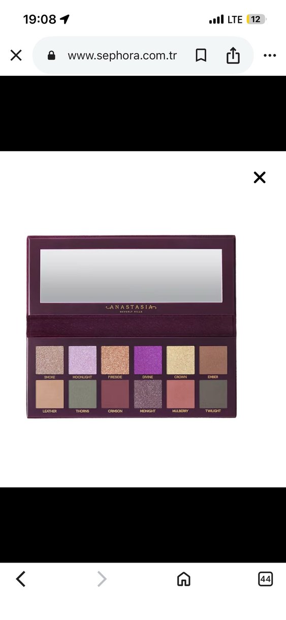 Anastasia Beverly Hills göz farı paleti, mat ve ışıltılı karışık koyu mor tonları ve nötr renkler içerir. Uygulama için aynalı tasarıma sahiptir. 1 kere kullanıldı Fall Romance Eyeshadow Palette #anastasiabeverlyhills #farpaleti #fallromanceeyeshadowpalette