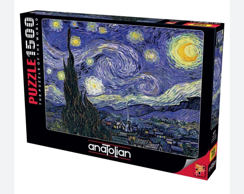 Anatolian marka, Van Gogh'un Yıldızlı Gece tablosunu lacivert tonlarda gösteren bir puzzle Hiç açılmadı ürün sıfır