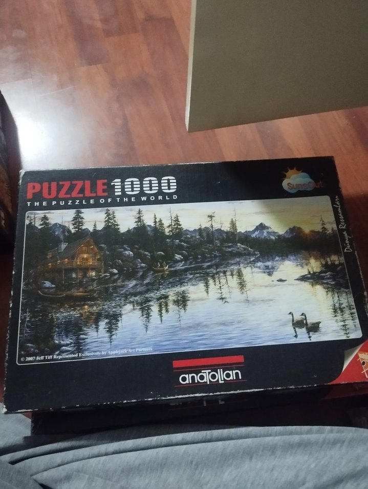 Anatollan markalı 1000 parçalık puzzle, karanlık doğa manzarası ve göl, ağaçlar, dağlar görüntüsü içerir.