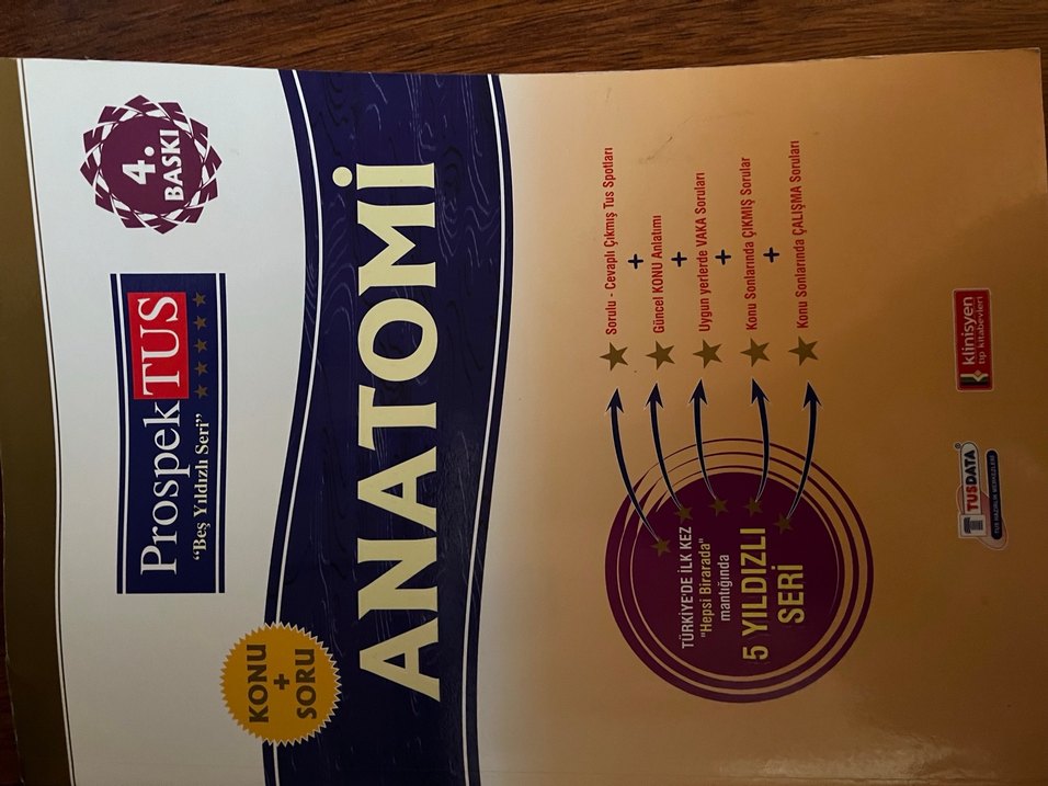 Anatomi konuları ve soruları açıklamalı, güncel içerikli, sınavlara hazırlık için testler ve çözümler içeren kitap.