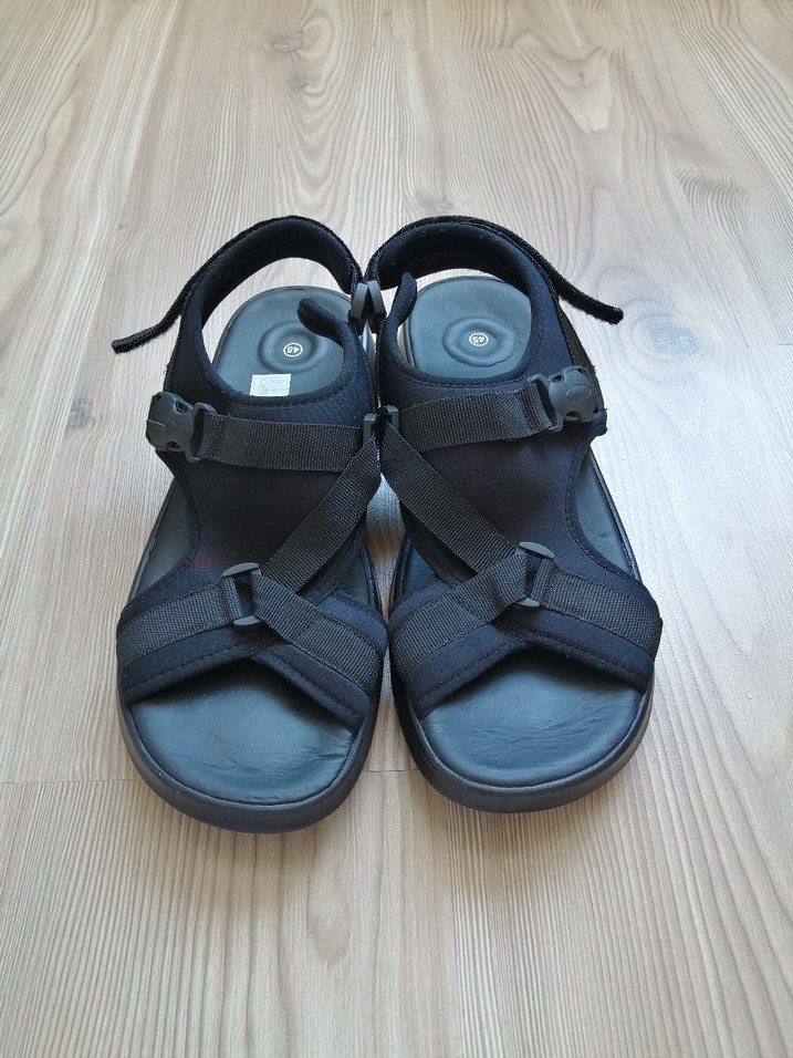 Siyah, tokalı bantlara sahip kauçuk kadın sandaletleri, minimalist ve normcore tarzıyla günlük kullanıma uygundur.