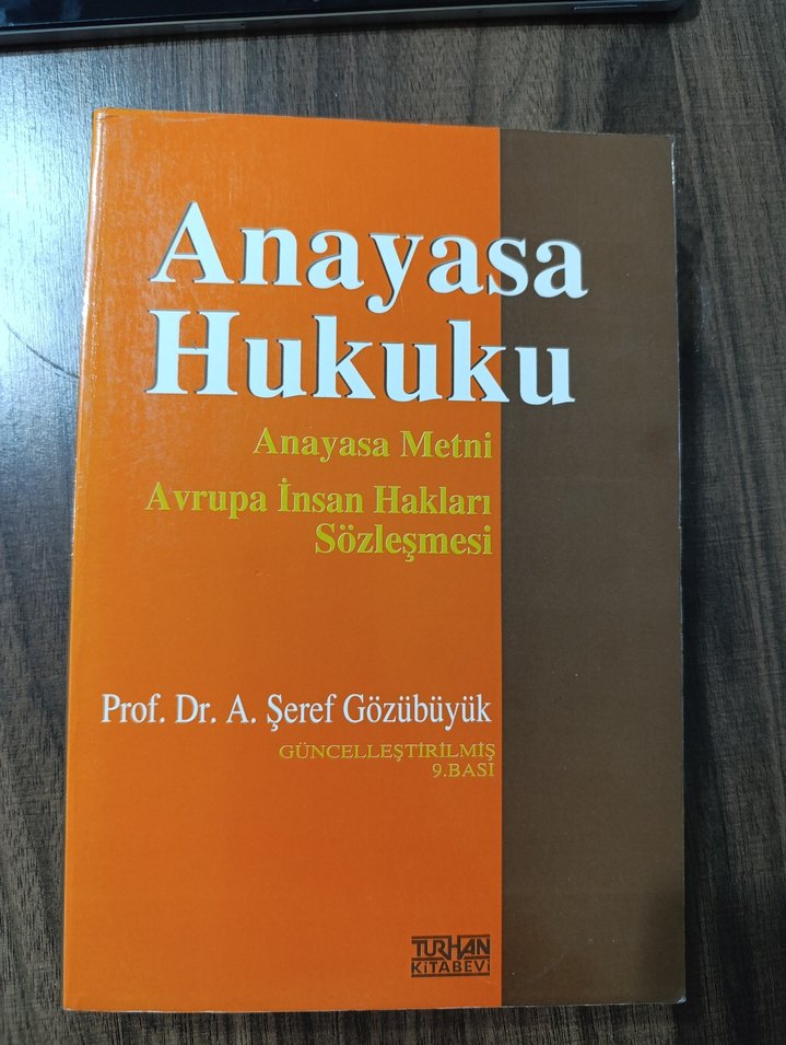 Prof. Dr. A. Şeref Gözübüyük'ün güncellenmiş 9. baskı Anayasa Hukuku kitabı, Anayasa Metni ve Avrupa İnsan Hakları Sözleşmesi'ni içerir.