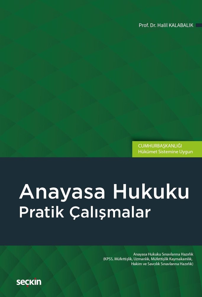 Prof. Dr. Halil Kalabalık tarafından hazırlanan bu kitap, KPSS ve hukuk sınavlarına uygun anayasa hukuku pratik çalışmaları içerir. Temiz kitap