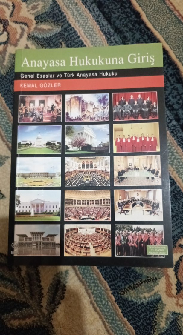 Anayasa hukuku ve Türk anayasa hukuku temel esaslarını içeren, çeşitli tarihi ve resmi görsellerle desteklenen kitap.