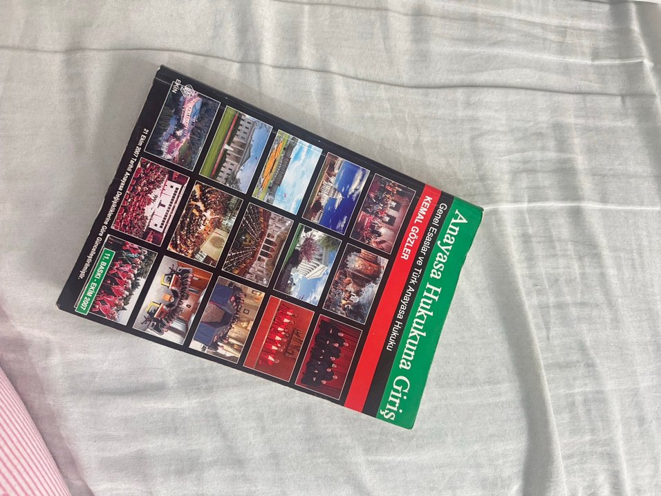 Anayasa hukukuna giriş yapan, hukuk ve devletle ilgili çeşitli görseller içeren kitap. 11. Basım bazı sayfalarda çizimler mevcut