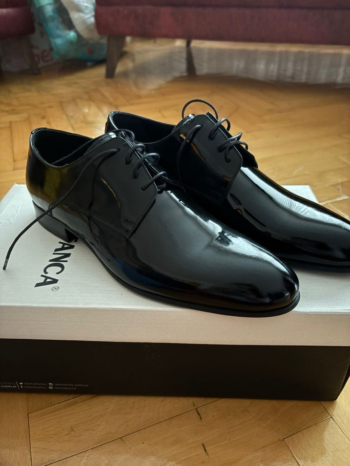ANCA markalı siyah parlak erkek klasik ayakkabılar, çağdaş tasarıma ve kauçuk tabana sahip, ofis için uygun.