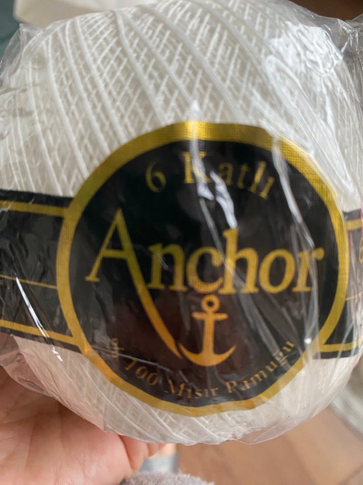 Anchor markalı, %100 pamuk beyaz elişi dantel ipi 50 no hiç kullanılmadı. Bunun yanında anchor ve farklı marka ve numara çoğu hiç kullanılmamış 9 adet dantel ipleri birlikte gönderilecek