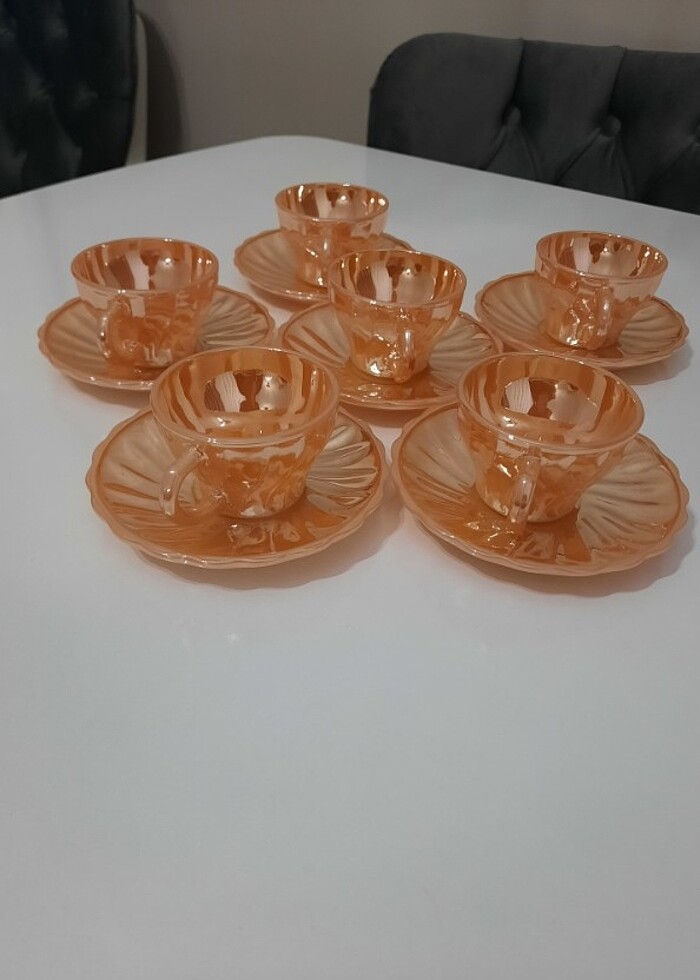 Antica vintage 6lı fincan takımı ürün vitrin süsü olarak kullanıldı sadece 6 adet fincan 6 adet tabağı mevcuttur. Made ın usa