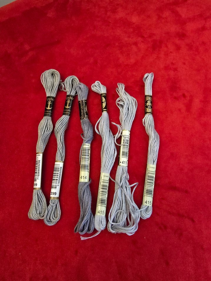 2 adet 399 Anchor, 1 adet 414 numara DMC, 3 adet 415 numara DMC nakiş ipliği. son fiyattır iade kabul edilmemektedir. #dmc #muline #nakışipliği #iplik