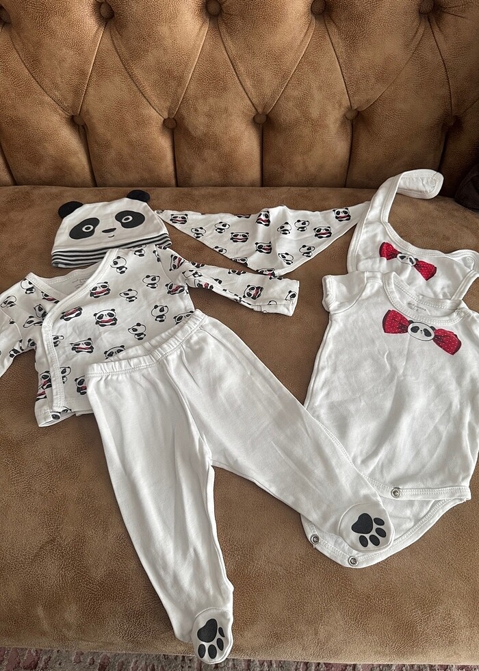 Andy wawa hastane çıkış seti 6 parça kendinden eldivenli zıbın on çıt çıt kısmında küçük yırtık var ekledim fotoğraf 0-3ay